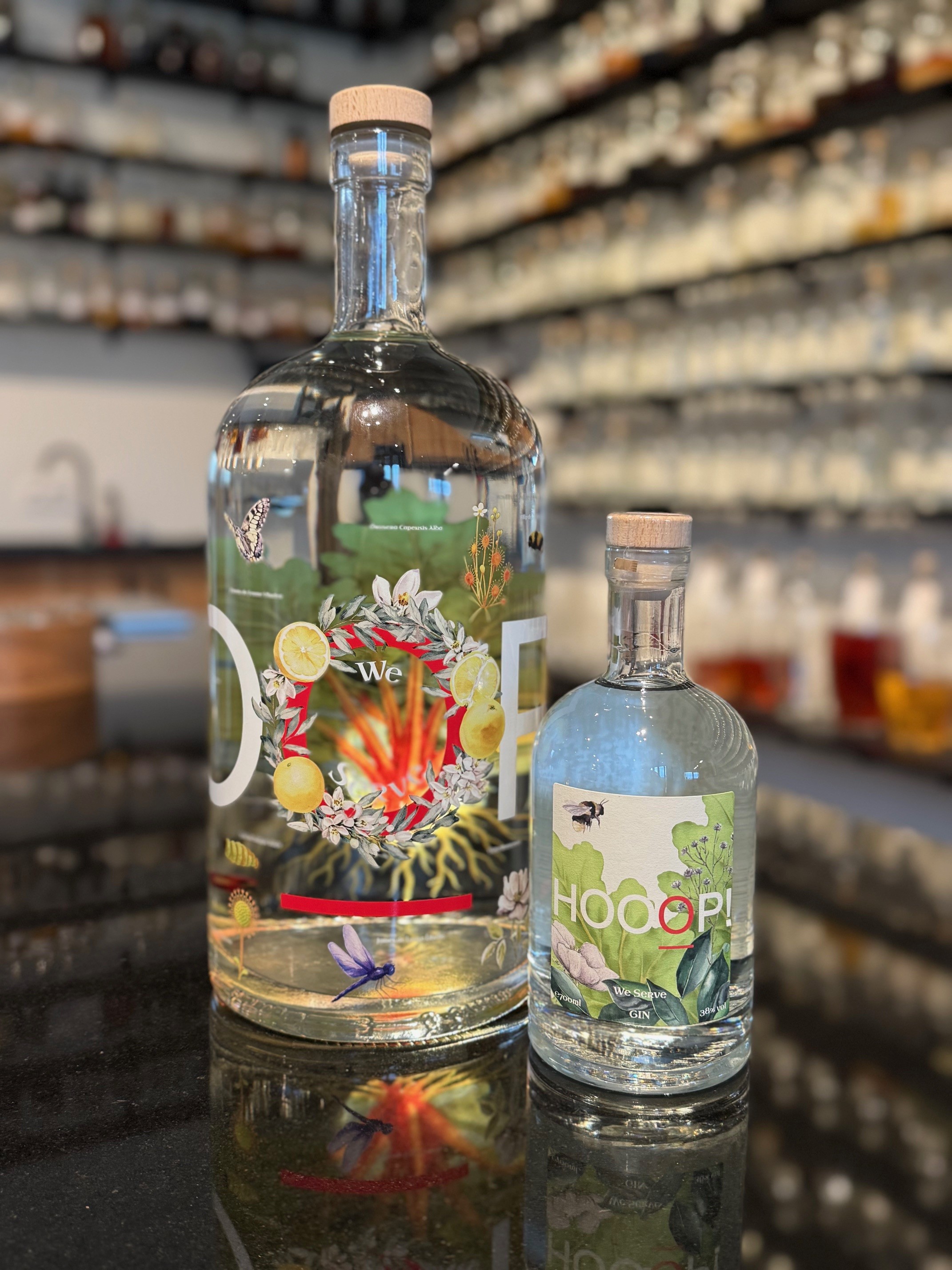 Sinds kort zit onze gin in een nieuwe fris ogende en mooie fles. Daarnaast bieden we ook een special edition magnumfles van 4,5 liter aan. Een waar kunstwerk dat werd geproduceerd in een batch van slechts 50 stuks, waarvan een groot deel reeds is verkocht. Mis de kans niet om zo'n prachtige showfles in huis te halen.